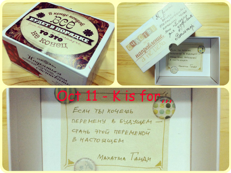 В этой коробочке я храню всякие памятные для меня вещицы. Оставалась коробочка из-под телефона Fly, вырезала из журнала Yoga Journal ободряющие цитаты и обклеила ими коробочку снаружи и изнутри.