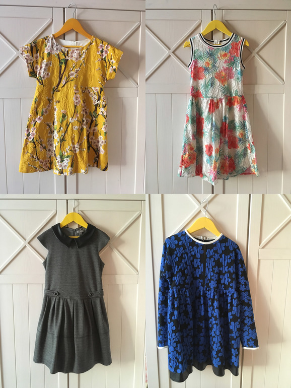 Все платья покупались в Даниэле. Ярлыки, этикетки почти все срезаны, так как ребенку мешают.