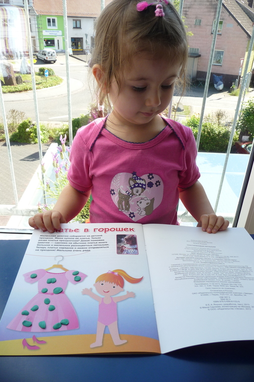 Потом мы вспомнили, какое красивое платье было у Эвы в день рождения. И что, если идешь на такой праздник, то нужно тоже нарядиться. Дальше выполнили задание и правильно продолжили цепочку.