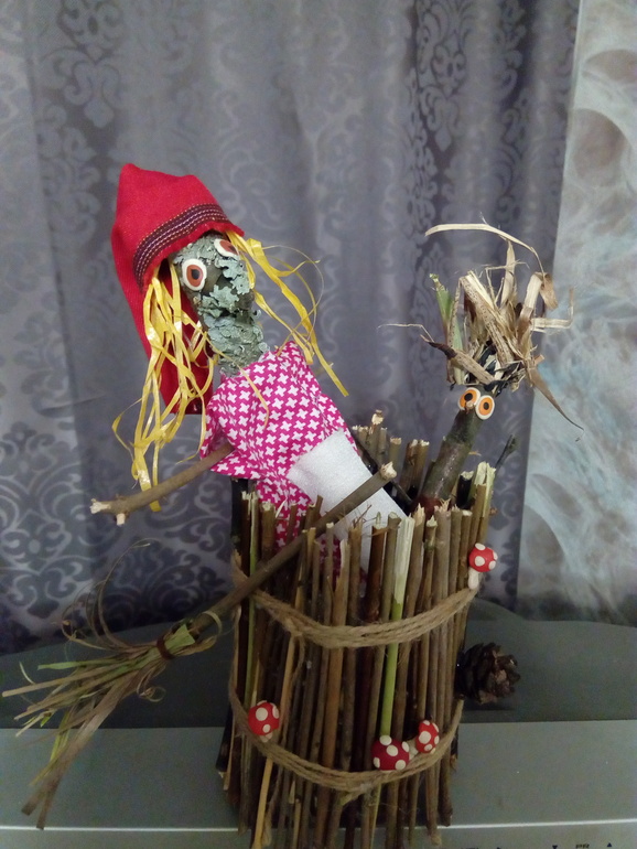 Клаассс!!! Вот это красота) Я бы даже не додумалась такую бабку-ёжку из обычных веток сделать. Корзинка с цветами вообще шедевр! Беру на заметку, даже самой захотелось что-то подобное сделать. Жду вечера, будем креативить. Спасибо за вдохновение!