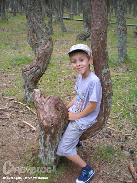 Танцующий лес, как и любое загадочное место, окутан мифами. Существует легенда – если пролезть в петлю образованную стволом сосны, то разом избавишься от всех болезней.