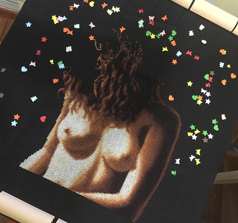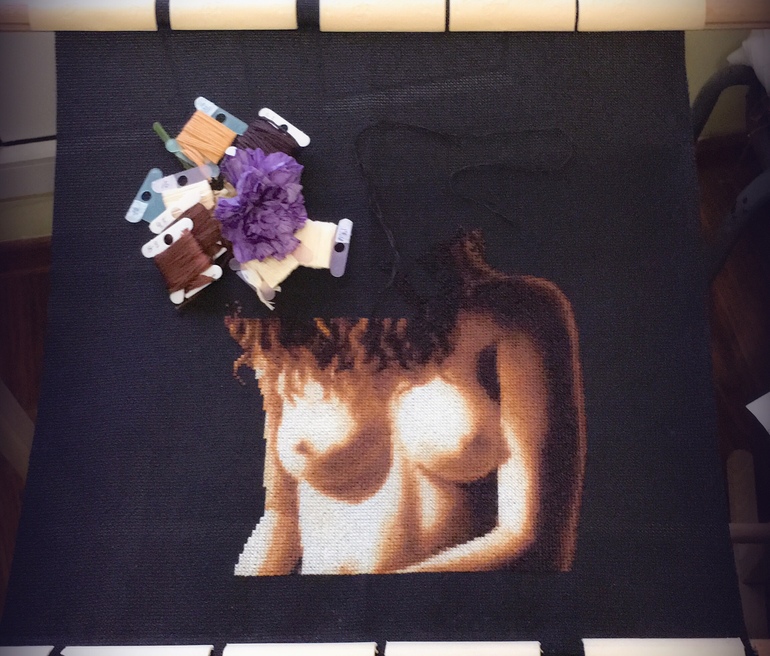 Ну вот 4,5 месяца труда увенчались красотой на моей стенке)! Монохром вышивала первый раз) ещё и на чёрной канве) было сложно🤩но я это сделала👌🏻👏
