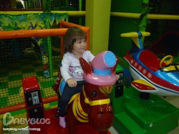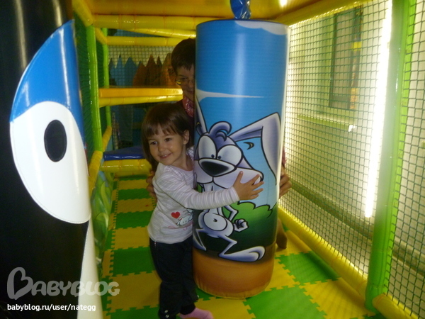 Погода в этот день была плохая, шел дождь, дул ветер, и мы были практически одни из детей в клубе, нам повезло, ни с кем не толкались в лабиринте, на карусели, на горке))