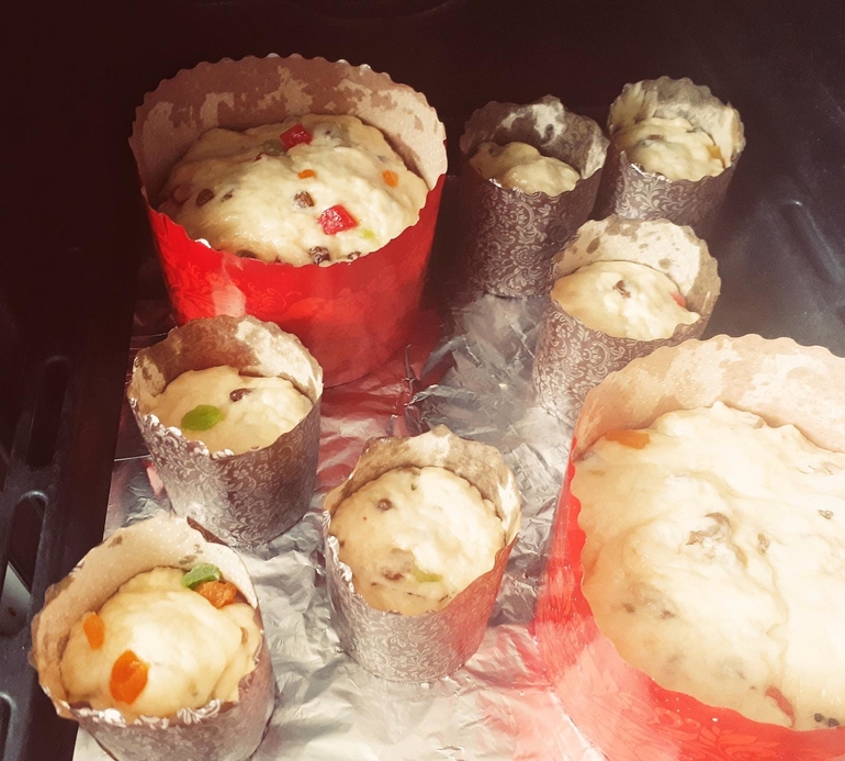 3)Ставим наше тесто в теплое место до увеличения в 2 раза,поднялось-опустили,опять ждем поднятия,поднялось-добавили изум,цукаты ,и опять ждем поднятия))на 3 раз можно печь)
