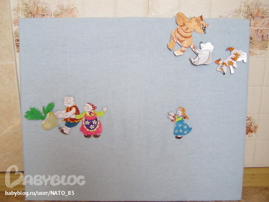 Сделала, как и все... Взяла фанеру, обтянула ее фланелью и с обратной стороны закрепила.