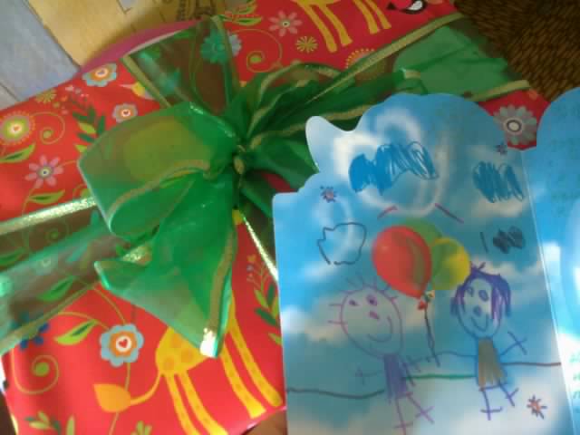 вручили маленький подарок, открытку писали с Женей вместе. я писала, она диктовала.но больше всего мне понравился ее рисунок