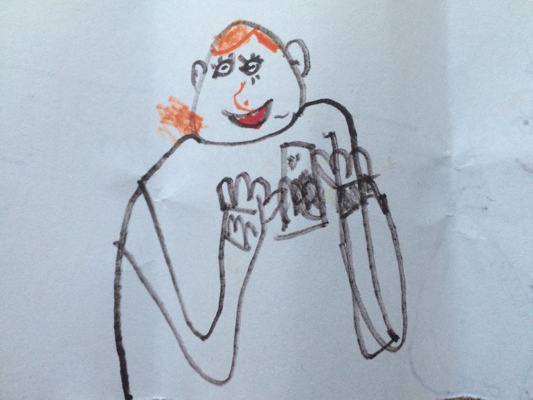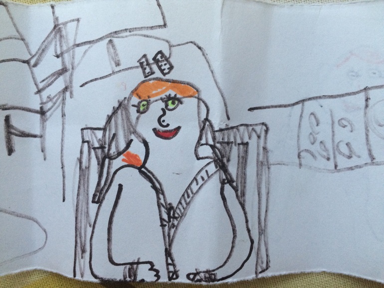 Мама с ресницами на фоне окружающей обстановки: за столом, на стуле, за спиной телевизор и два пульта, справа видим плитк с конфоркам, слева не знаю что. Вообще, там- дверь)