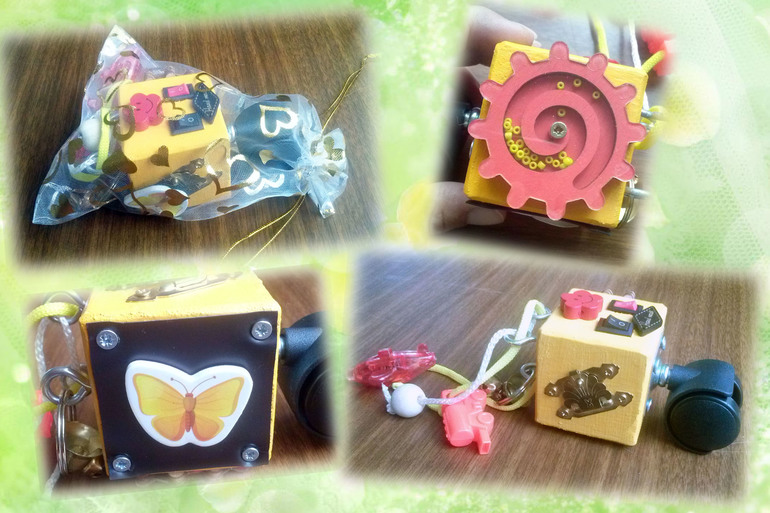 Что же такое Бизикубик? Это деревянный кубик на стороны, которого прикреплены разные детальки.