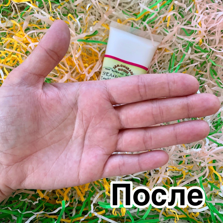 и держится долгое время, сразу скажу, что он на любителя, но мне понравился. Несмотря на свою густую консистенцию и ''жирность'', крем прекрасно распределяется по коже и полностью впитывается буквально за минуту. Результат видно уже с первых минут: кожа рук становится нежная, мягкая и гладкая(даже такая сухая