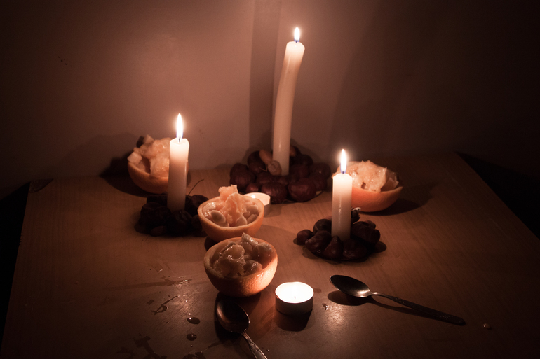 А вечером мы все-таки выполнили задание. Мы сделали фруктовый салат. При свечах.