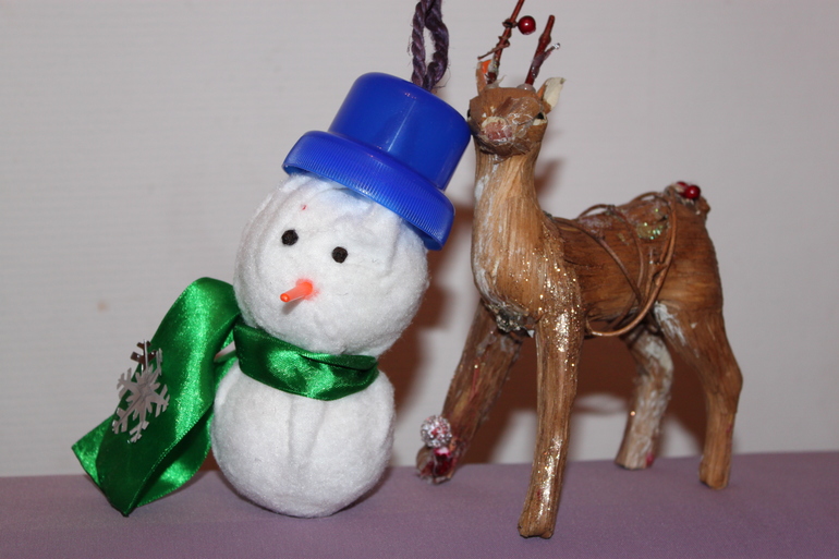 А еще на меня напало желание выкинуть все-все в доме. Все лишнее и не очень. Но не просто выкинуть, а так сказать, поставить точки. И тогда я починила несколько игрушек. Сделала из остатков снеговичка.