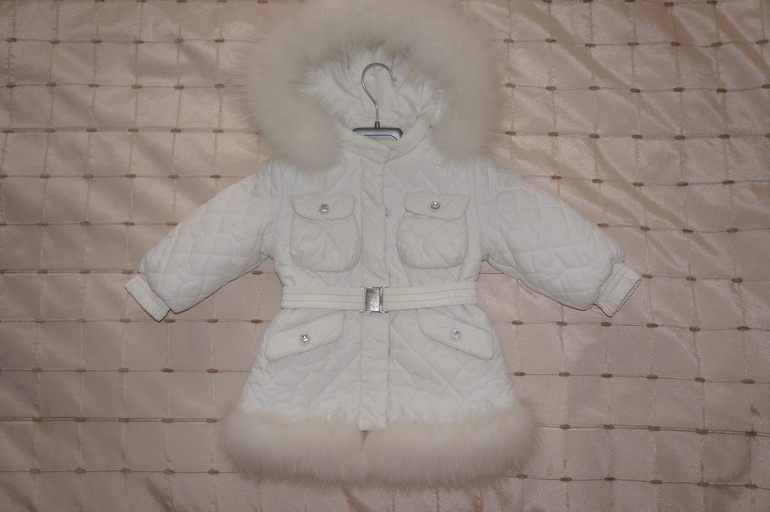 Пальто демисезонное laura Biagiotti очень красивое и стильное с пуговицами сваровски. Мех отстёгивается,выглядит отлично. Размер стоит 9 м.,но мы одевали и в 2 года . Есть нюансы ,все на фото .