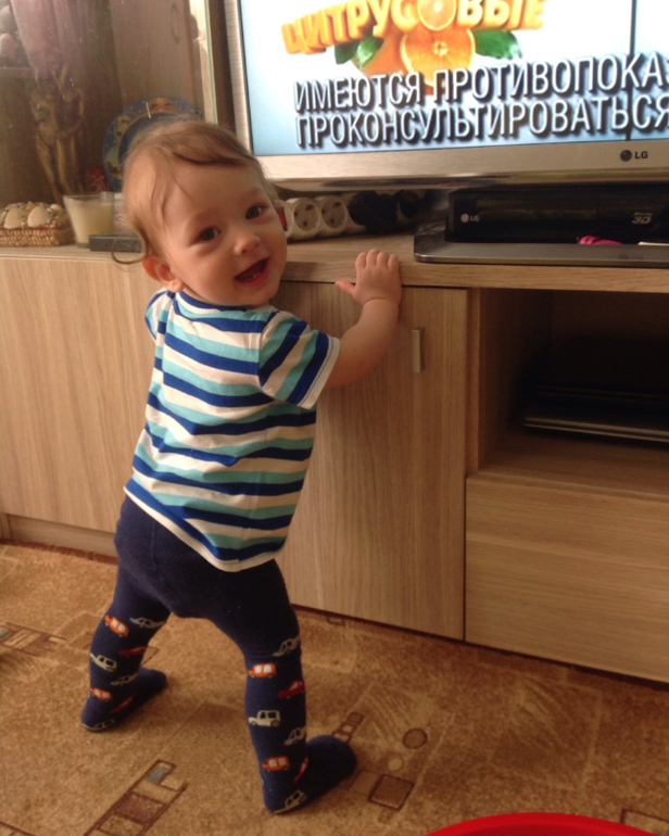 Из приятного: пупс мой полностью на ГВ, все так же по требованию. Так-то режим почти в норме каждые 3 часа, но бывают дни, когда магнитные бури, смена погоды и еще какие-нибудь неприятности огорчают маленького и он может висеть на титьке часами, но таких дней мало. Животик нас почти не мучает, а если бывает, то пьем Плантекс. Мы очень хорошо узнаем семью и улыбаемся от всей души! Такой милаха!)))) Прям зацеловала бы всего-всего, но сын моей страсти не оценивает и смотрит на меня как на дурочку, типа, "мама, ты чего тут устроила..."))) Любит "агукать", пытается повторять звуки, частенько что-то лопочет, прям целую речь выдает. Научился поворачиваться на бок. Пытается перевернуться, но не знает, куда руку девать. Учимся. Лежа на животе голову держит прямо и высоко, поворачивает на голос. Открыл для себя новый мир - ТЕЛЕВИЗОР...Оооо, это просто жесть, граем глаза если зацепит, то все... шею выворачивает пока не увидит полную картинку.Приходится отворачивать, уносить его или просто не включать телевизор))) К купанию относимся позитивно. Раз в неделю набираем ванну до краев и плаваем с кругом. Так прикольно - если лежит на спине, то тут же переворачивается и гребет руками-ногами, в этот момент я жалею, что у нас ванна длиной всего 1,7))) Глазки у нас голубые, около зрачка прям небесный цвет! Я все еще не теряю надежды, что цвет не сменится на карий))) Парень у нас жаркий, не любит много одежды, дома не так уж и жарко, около 20-22 градусов и 2-3 раза в день комната проветривается, но любимая одежда бодик, желательно с коротким рукавом и без носков))) мне кажется, была б его воля, он бы и голышом валялся, но мать в лице меня все переживает, что ноги холодные)))