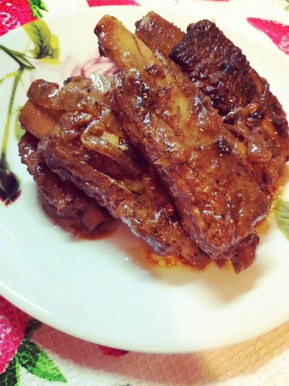 Ребра по этому рецепту получаются очень мягенькими и мясо само отстает от кости.