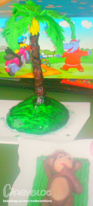 Обезьянка плывет к пальме с бананами (Думает и когда же я уже до нее до плыву )))