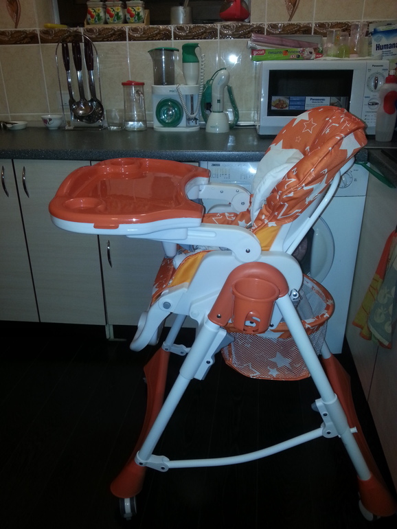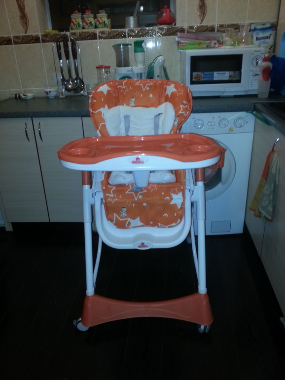 купили стульчик для кормления))))) я прям такая радостная)))) старшему сыну я не покупала стульчик, т.к. он сидел еще за тем стульчиком, за которым я сидела))) (деревянный, в последующем раскладывается в парту) но мне он показался не удобным и я стала ныть что хочу купить новый...мое нытье всем надоело и тадам.......мы сегодня это сделали))))) ходили, ходили, смотрели, смотрели и остановились на фирме САТУРН. Стульчик регулируется по высоте и по наклону спинки. Взяли за 17 000 тг. Цена очень обрадовала)))
