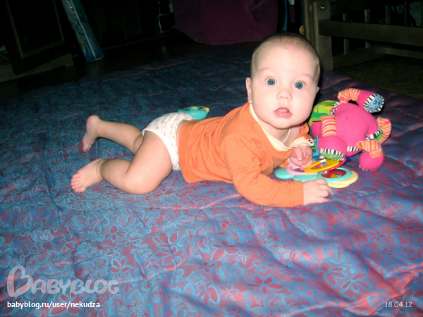 караул караул !! Ползаем по пластунски с 5 месяцев 5 дней, сейчас 5 месяцев 2 недели - Сава уже неделю как встает на колени и так раскачивается, хочется ползти на четвереньках, но слабы ручки еще , слабы ножки . Манюня моя, золотко моё, как же радостно это все, как счастливо видеть как ты учишься новым и все более сложным вещам, преодолевая трудности, пыхтя и пища ,под мамин смех и мамины радостные оханья :))) и как теперь стало еще сложнее, уже и на секунду тебя не оставить, не отвернуться, в туалет скоро вместе начнем ходить :), шучу )))