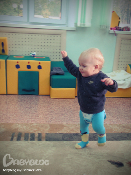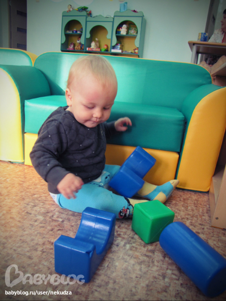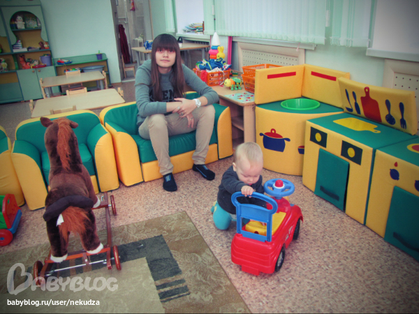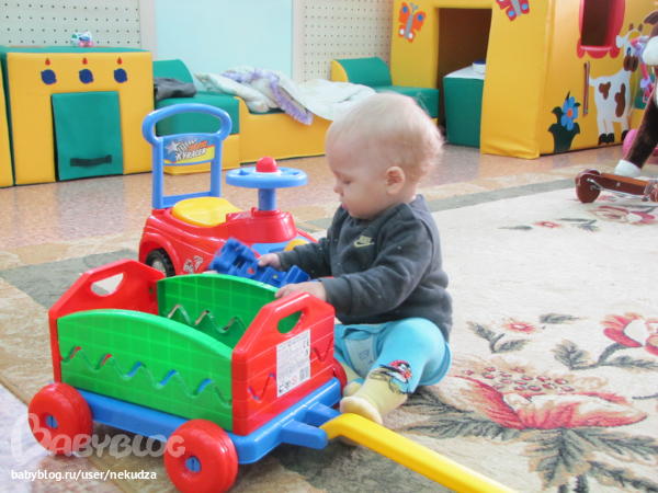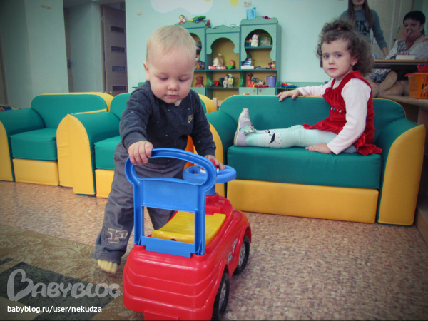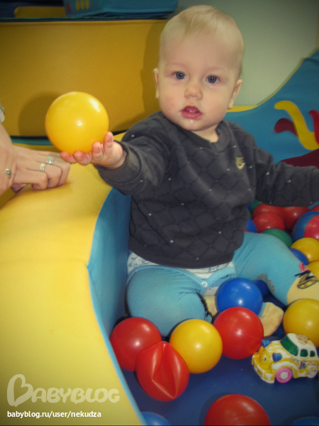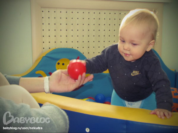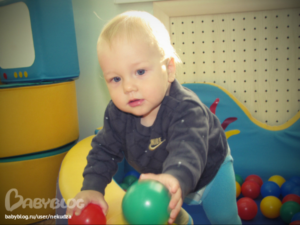 Когда защли в группу, такооооооооооое началось, Сава носился в буквальном смысле слова, пищал от радости, подбегал от одной игрушки к другой, хватал машины, залез сам в сухой бассейн, начал раскидывать мячики, такой радости я у ребенка наверное еще и не видела, а он у нас ооочень веселый !!! а тут вообще слов нет, чтобы описать 1