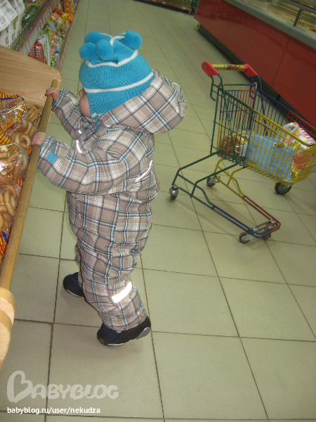 наша жизнь,текучка-развлекучка :)чуть пол маркета не разнесли, с полок все скидывал, еле утащила, больше пока с маленькими тележками не будем по залу ходить,а то потом и Савелия тащи, и эту тележку