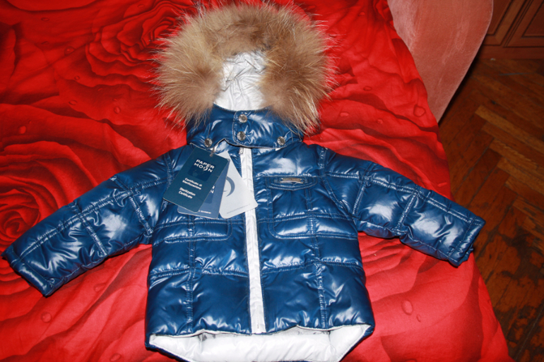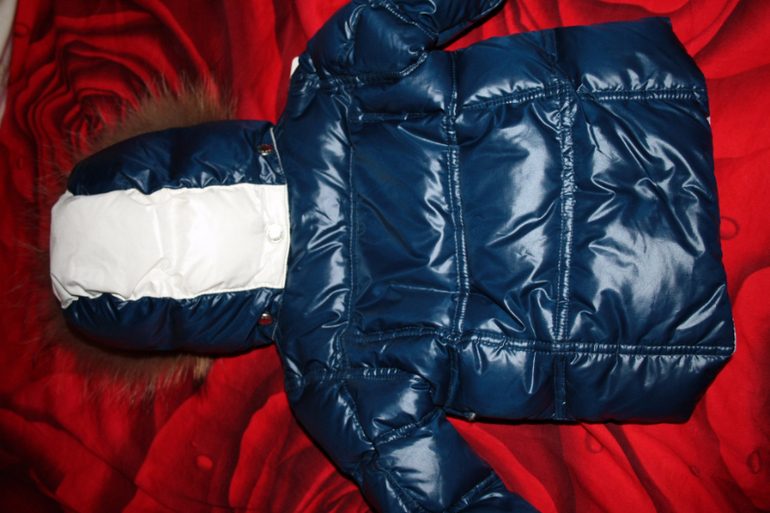 б/у 2 мес в коляске,продам курточку 6-9мес 68СМ,цвет синий,наполнитель пух,верх-полиэстер 100%,на капюшоне густой,настоящий мех.Покупала в KANZ.