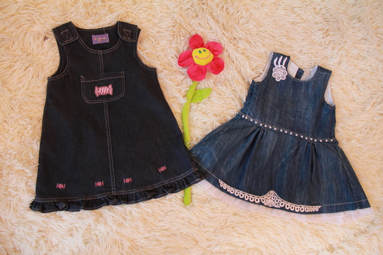2. Джинсовые сарафаны: с конфеткой маркировка 18 мес - реально до 2,5 лет - 350 руб, с белым цветочком сзади полностью на пуговичках. маркировка 80 см - реально до 2,5 лет. - 450 руб. ПРОДАНО!