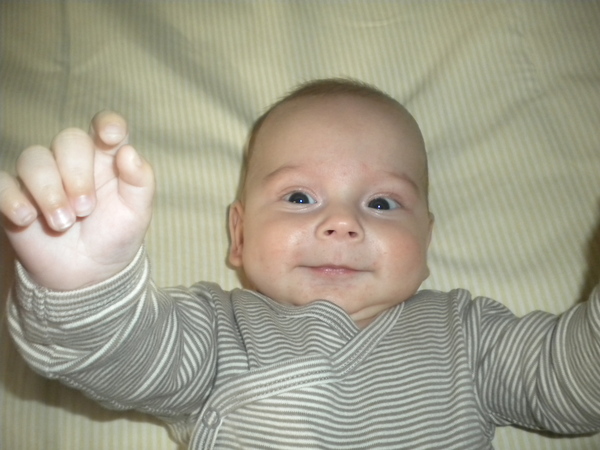 3.09.2012 Максик впервые явно засмеялся в голос, когда я его пощекотала. А сегодня положила его на живот, и он, глядя мне в глаза, так долго и громко гулил и заливисто хохотал!!! У меня прямо слезы наворачивались)))