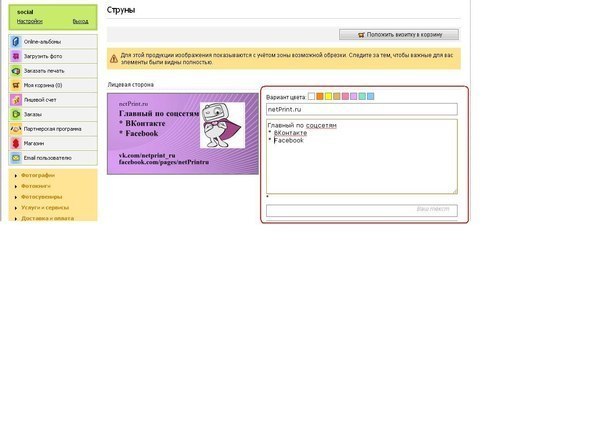 3. Сделать любой заказ к Пасхе и положить его тоже в "Корзину", чтобы ваши визитки стали бесплатными :)