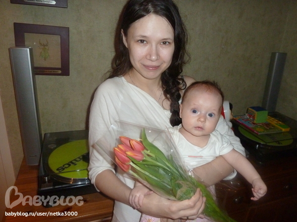 Малыша конечно больше интересует шуршащая упаковка, чем цветы)