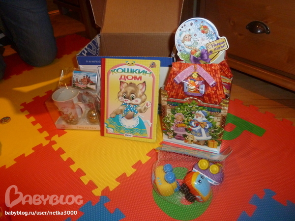 Для Миленочки книжка "Кошкин дом" (Кисы у нас сейчас в фаворе) и машинки для купания.