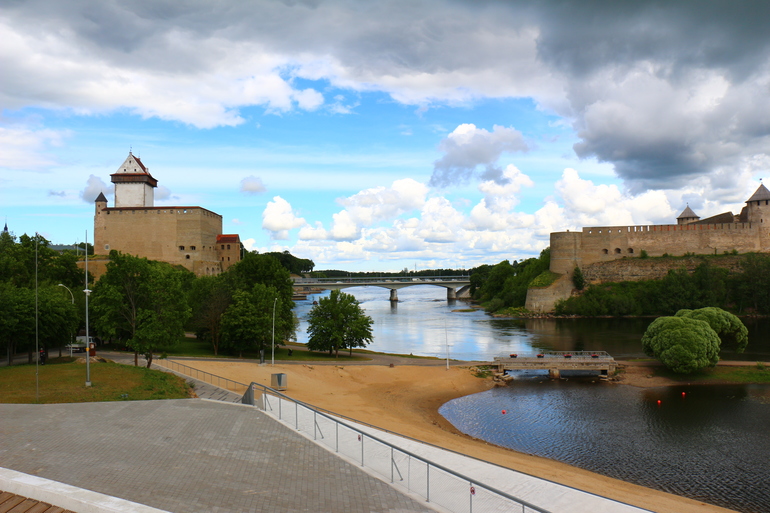 Посмотрела я здесь, на ББ, фотографии Нарвской крепости, и загорелась желанием посмотреть своими глазами. Виза есть, поэтому добавили с мужем пару выходных ко дню России, забронировали и поехали. Дорога на всем протяжении хорошая, только в районе Твери какая-то грандиозная стройка с расширением моста. На обратном пути провели там два часа(