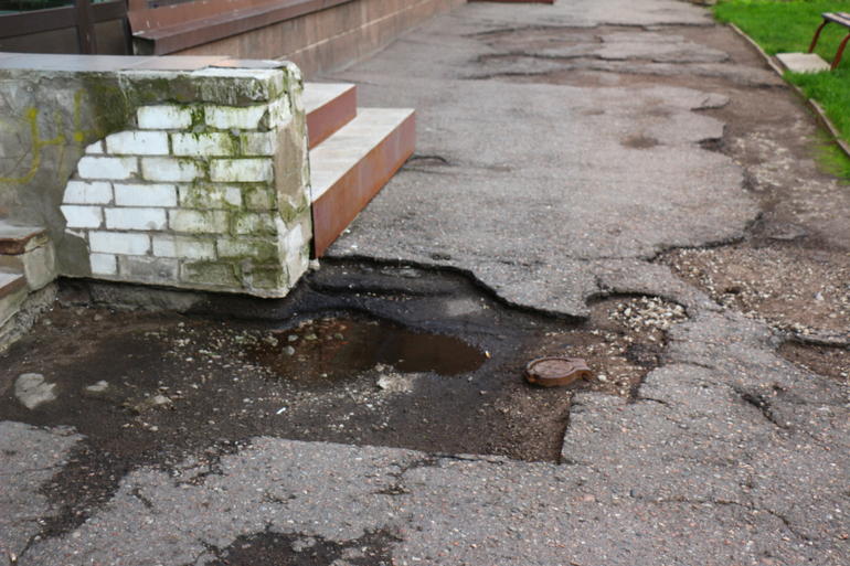 Устроились и пошли гулять. Ох... Если дороги еще более-менее пригодны для езды, то тротуары, дворы, здания в не лучшем состоянии.
