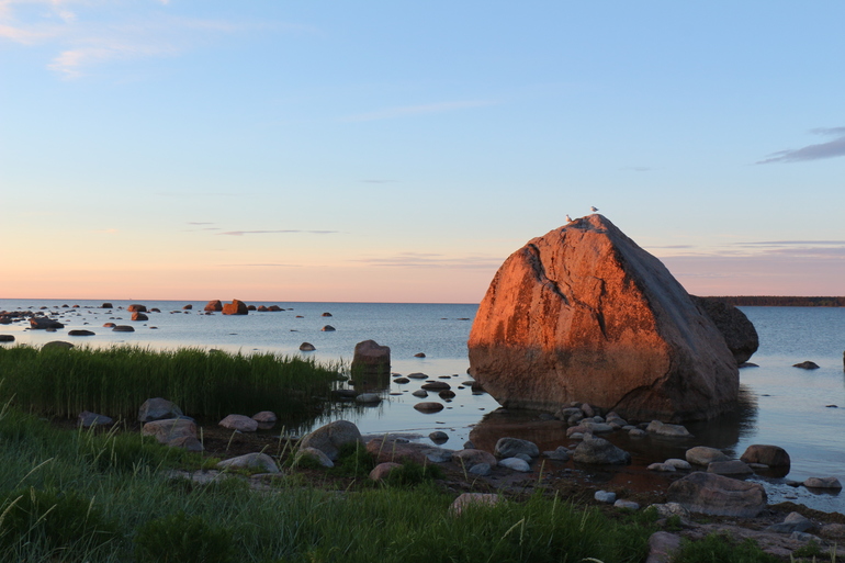 Решили мы, что эстонцы не вкладывают деньги в русскоговорящий регион и отправились в центр страны. Дорога хорошая, полоса в одну сторону, полоса в другую. В принципе с их движением больше и не надо. Пару раз встретился знак автомагистрали, расширение, увеличение скорости, но счастье длилось 2-3 км) До Таллина не доехали, были года три назад, воспоминания еще свежие. Свернули в деревню на Финском заливе. Весь день шел дождь, а часам к десяти вечера распогодилось. Небо голубое, солнышко. Для нас необычно в такое время.