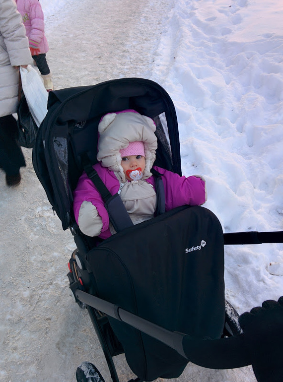 Ну, что я могу сказать. Я, честно говоря, такого не ожидала. Коляска оказалась выше всех похвал. Едет по снегу. Причем, едет очень легко, ее не надо сильно толкать. Очень маневренная, легко-управляемая.