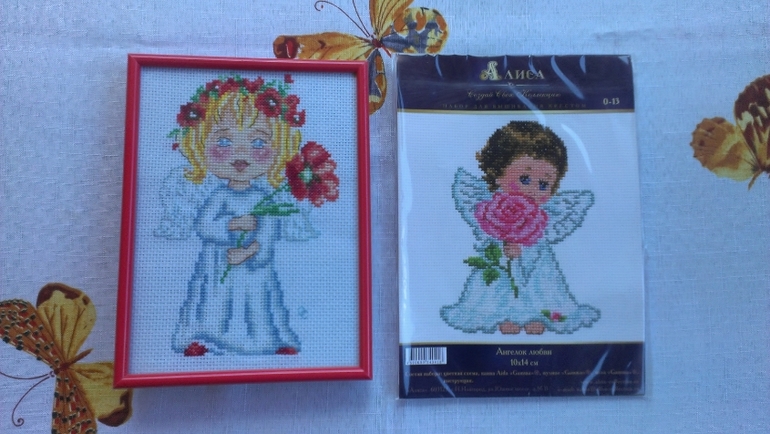 А теперь поподробнее.Слева мой ангелочек,а справа вышивка,которую прислала мне Наташа.Теперь вот вышью и будут у меня два))
