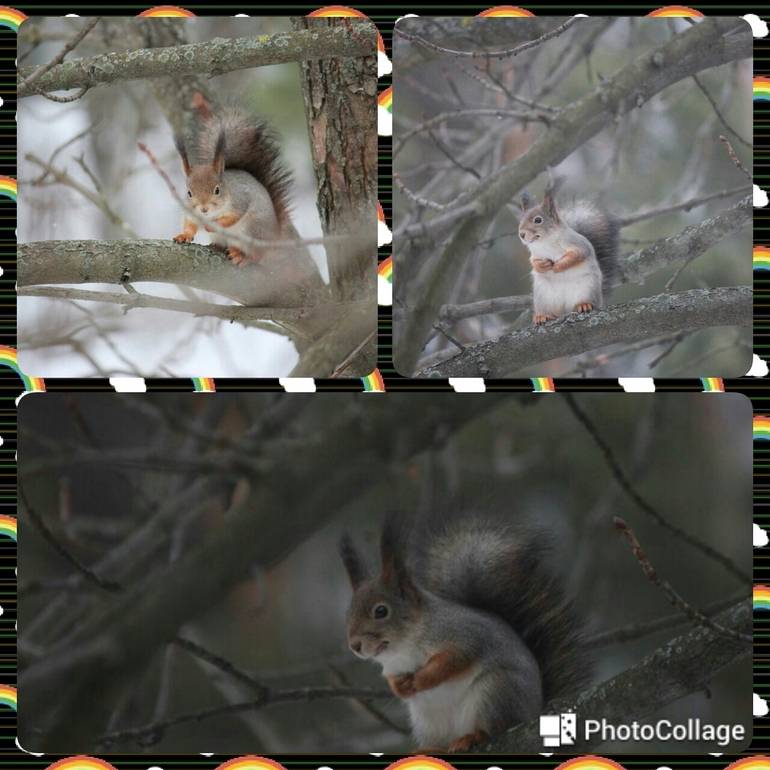 Ну надо же как здорово!!!!!У нас кормушкой Андрей занимается.Каждый день рано утром идёт им покушать насыпать.Пернатые и белочка съедают батон белого хлеба(для них специально покупаем лишний),семечек пару горстей,в уголок кладёт яблочко и орешки.Бунт у нас синички устраивают:-)тоже в окошко стучат.Для них сало зимой всегда висит.Кстати,сало и дятлы иногда пробуют.Вобщем кушать готовлю и краем глаза наблюдаю за ними,кормушка висит прямо перед кухонным окном.
