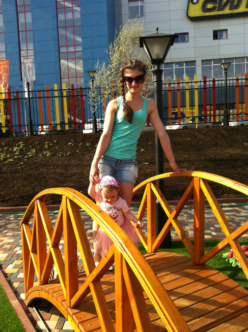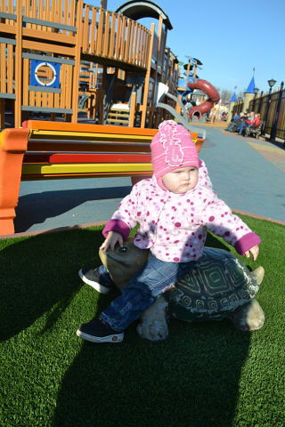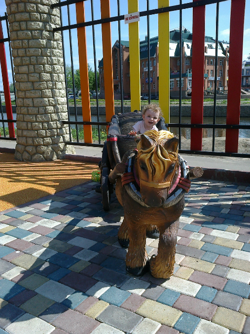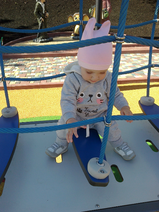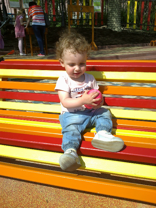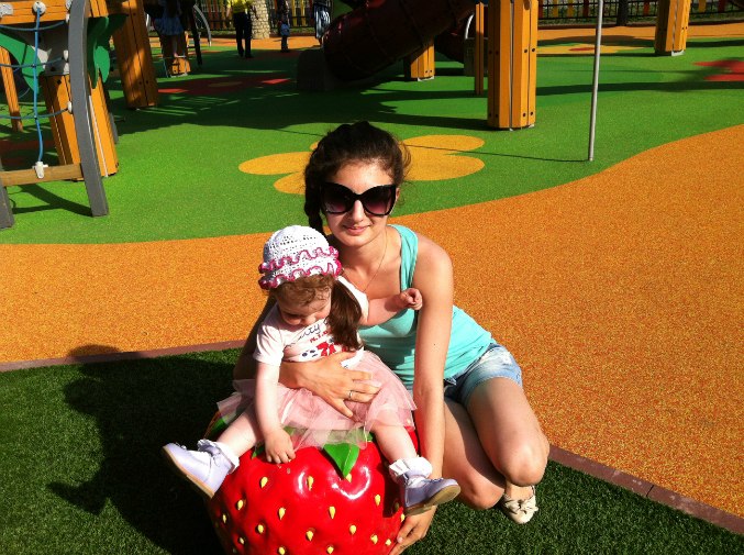 Саму площадку не фоткала, есть только фото дочки во время прогулок. Один из плюсов для меня - это наземное покрытие, на которое дочка падает, но не получает ссадин и не пачкается. Ну и различные горки, каталки, крутилки, качельки рассчитанные на разный возраст. Главный минус - много народа в будни вечером и выходые. Еще немного не хватает растительности, но в парке над этим работают, высаживают клумбы, скоро все будет)
