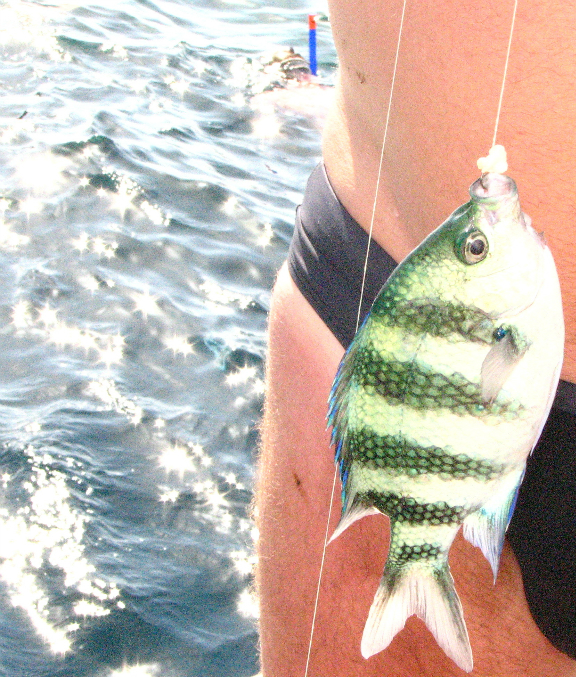 вот таких вот рыбешек плавало просто уйма, это еще один рыбак у нас был) ныряешь, а они везде))) правда сказали что их не едят