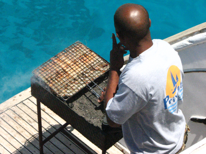 потом нас кормили - - это на гриле жарятся наши креветки)