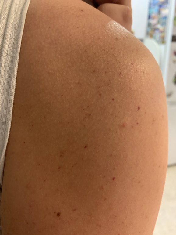Эти точки появились на руках, декольте (на груди нет), на спине, немного на животе, на ноге одна. Откуда?