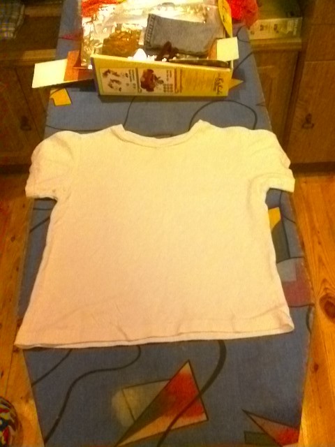 А дальше я схитрила. Получившиеся латы я нашила на белую майку. А спину прикрывал плащ, который я сшила из подкладочной ткани и обшила золотой тесьмой.