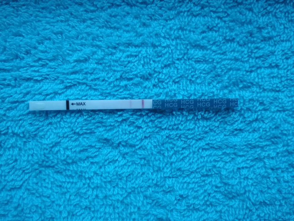 14.02 (7 ДПО) тестовая полоска снова стала ярчать. На этом фото не слишком четко видно, но она весьма заметна. в обычные циклы у меня полоски бледнеют вплоть до месячных. Поэтому я уже знала, что скоро будет // и на "беременном" тесте.