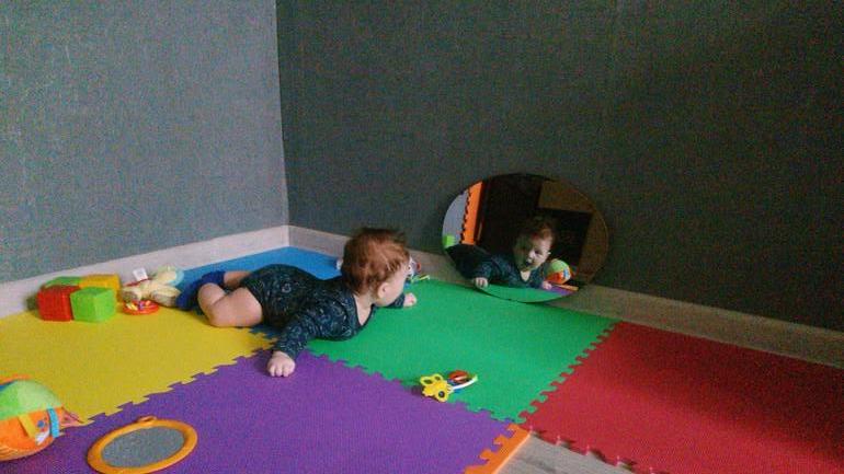 На пузе лежит подолгу и с удовольствием. Сейчас начала появляться опора на прямые руки, постоянно делает движения похожие на отжимания. В таком положении любит смотреть на себя в зеркало и наблюдать за кошками. Очень нравится разрушать башню из кубиков, которую строит мама, прям восторг! 😋