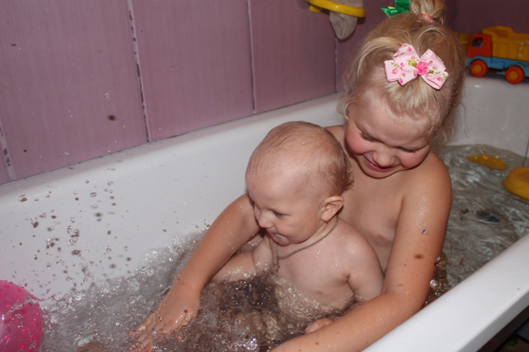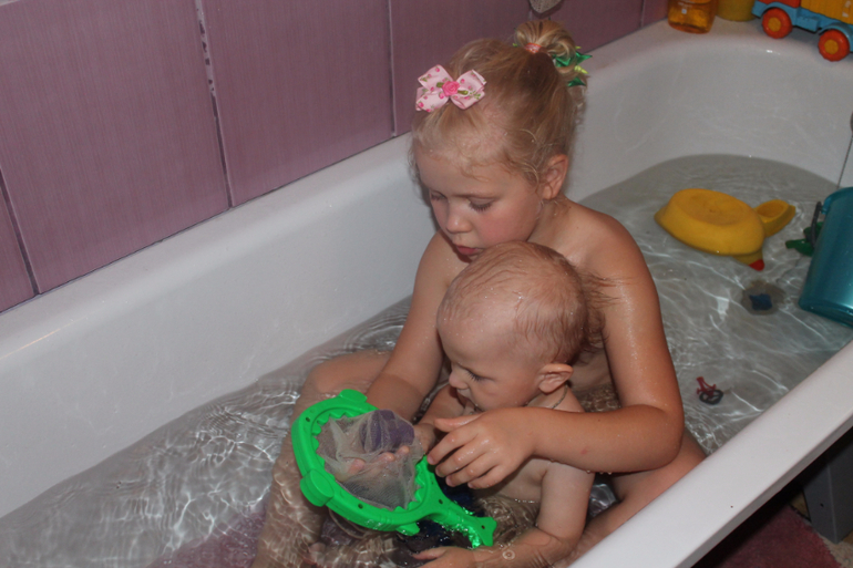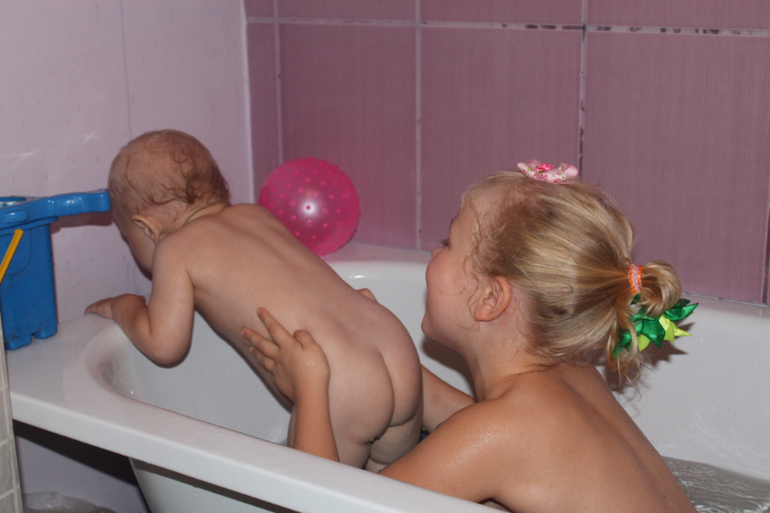 физкульт-приветрешила запечатлеть наши купания. Вместе Птицы купаются не всегда,бывает нет времени и быстрее искупать Сашку,а Ева потом моется сама, но вместе им веселее)))