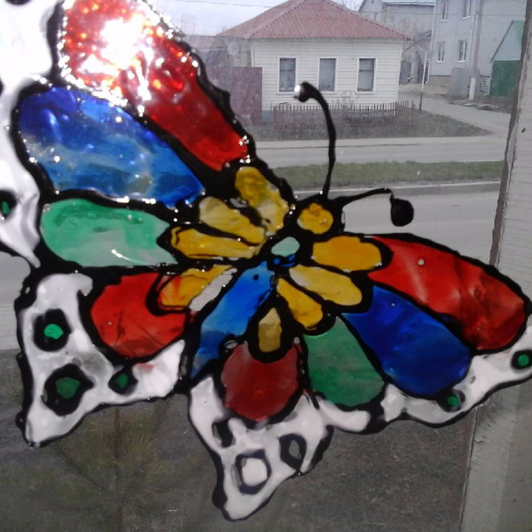 творчествоподзабыла про эти чудесные краски, а между тем рисовать ими достаточно легко,а получается красота. Ева справляется сама, хотя это всё же труд, нужно следить чтобы не размазалось,но чтобы и не было дыр))) украсили свое Серое окошко,точнее,вид из окна пока что серый,но не у нас,у нас бабочка!!! а я сделал пробные фигурки для игр на световом столе. их я покрывала двумя слоями краски для плотности и сделал их небольшими,чтобы не рвались от частого приклеивания. Пока что САшин натиск они выдерживают,хотя он даже мял их в комочки)))