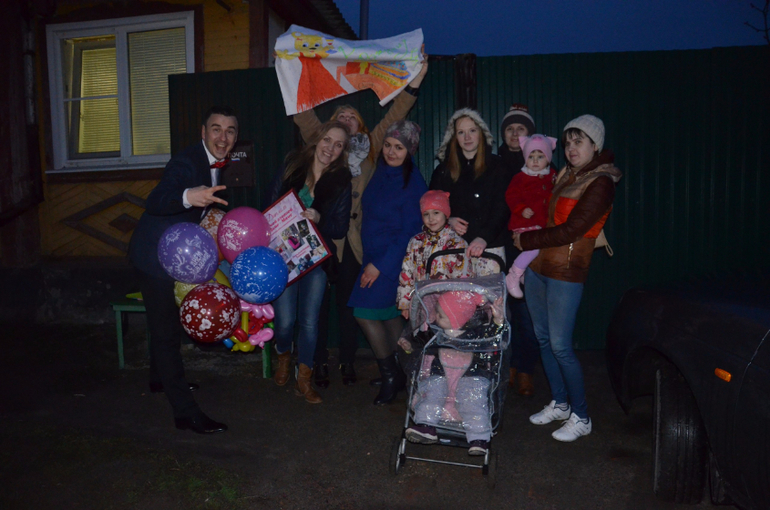 Итак, эти конспираторы выманили меня из дому. Открываю калитку, а там.....Коля Слюсарев в бабочке при параде - как сошел с картинок ленты соцсетей!!! Дальше смотрю...Света с шарами, Лена, Валя, Олеся, Юля, дети в колясках, Полинка малышка скачет радуется, Саша всё это дело снимает, дождь идёт, а они все тут собрались меня поздравить, представляете???!!! Дальше они мне вручают диплом, Коля продолжает говорить всякие красивые слова, я таю, я не верю, что они все пришли))) Я счастлива, правда.