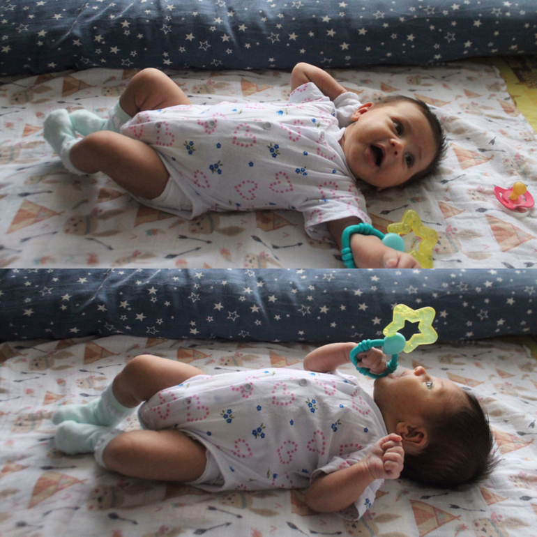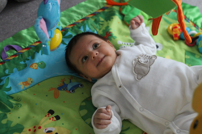 - отлично реагируем на все внешние раздражители, в особенности на лица родителей, развивающий коврик и кошку