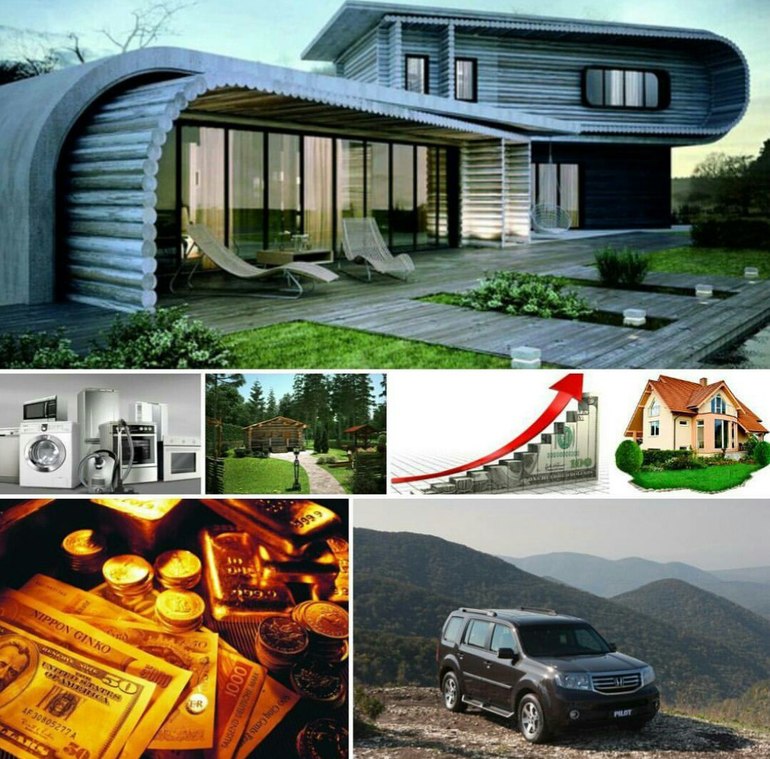 Продумываем, сколько конкретно денег мы хотели бы зарабатывать через полгода, год. Например «Мой заработанный миллион рублей за этот год» «Мой доход за месяц», «Мой дом, купленный за наличку, в моей собственности» «Моя машина» Подумайте, какая машина будет у вас, какой дом/квартира. Что из материальных благ еще вам нужно? Продумайте, какой будет дом/квартира. Сколько там будет комнат, этажей, что в ней должно быть обязательно (лоджия, эркер, окна в пол и т.д.) Также опишите машину: марка, цвет.