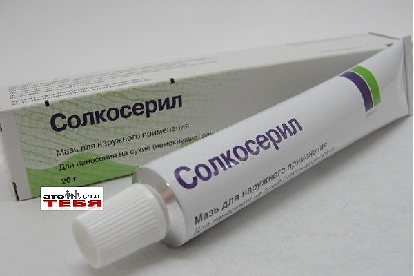 Мазь Солкосерил. Препарат способен повышать выработку коллагена, восстанавливать поврежденные ткани, улучшать кровообращение. Благодаря этому, регулярное использование этой мази дает великолепный омолаживающий эффект. Мазь нужно перед сном тонким слоем наносить на проблемный участок кожи. Проводить процедуру следует через день.