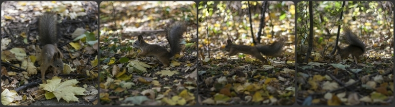 ПЫСЫ: на самом деле белки бегают за Левой, такое ощущение что они уже узнают кто их кормит. Сегодня был всего один орех, а белок много и они ходили, ходили за нами, обнюхивали Левины краги, но орехами от него не пахло. Еще так забавно, они встают на задние лапки, складывают передние на груди и выжидающе смотрят. Жаль что мы не смогли оправдать их надежд на сегодня=) Зато Лева хохотал и убегал от них по хрустящим листьям.