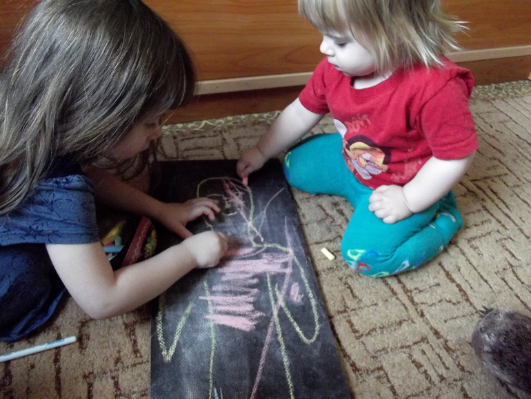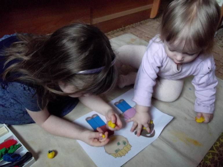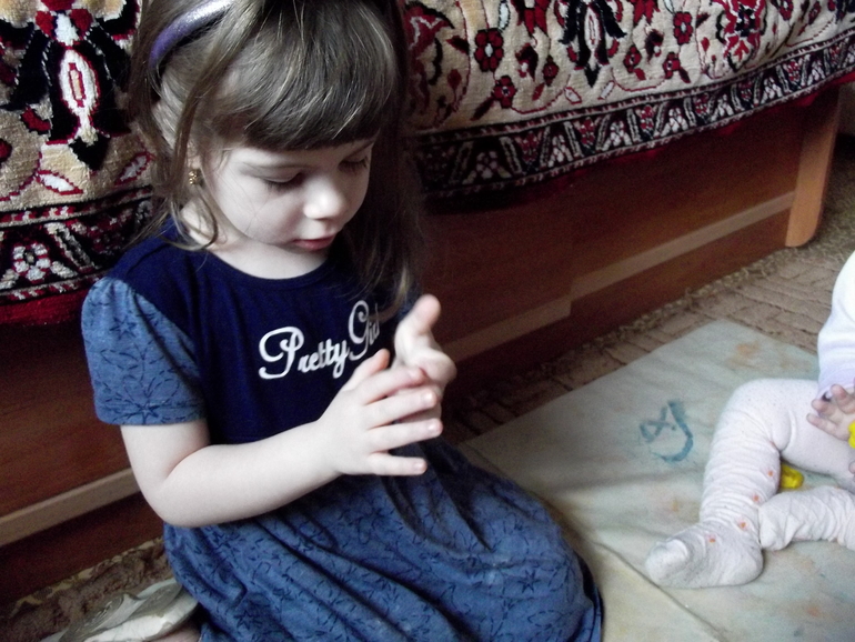 Пока дочки рисовали,я читала потешки из приложения .